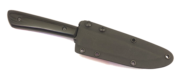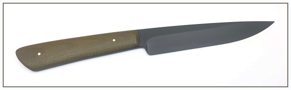 Steel: 1070 carbon steel (0.7% carbon) with black Kal-guard coating. 150mm radius hollow grind on blade.